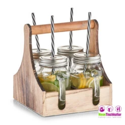 Neuetischkultur Glas, Metall, Holz Trinkgläser-Set In Holzkiste
