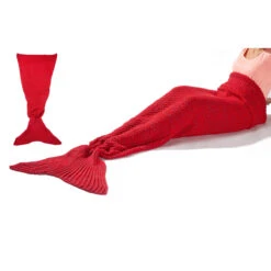 Decke „Meerjungfrau“, Kuscheldecke in Form einer Flosse ca. 180x90cm, Polyester, gestrickt, 630g, Rot/Blau, in Geschenkbox, Maße B:90cm H:180cm