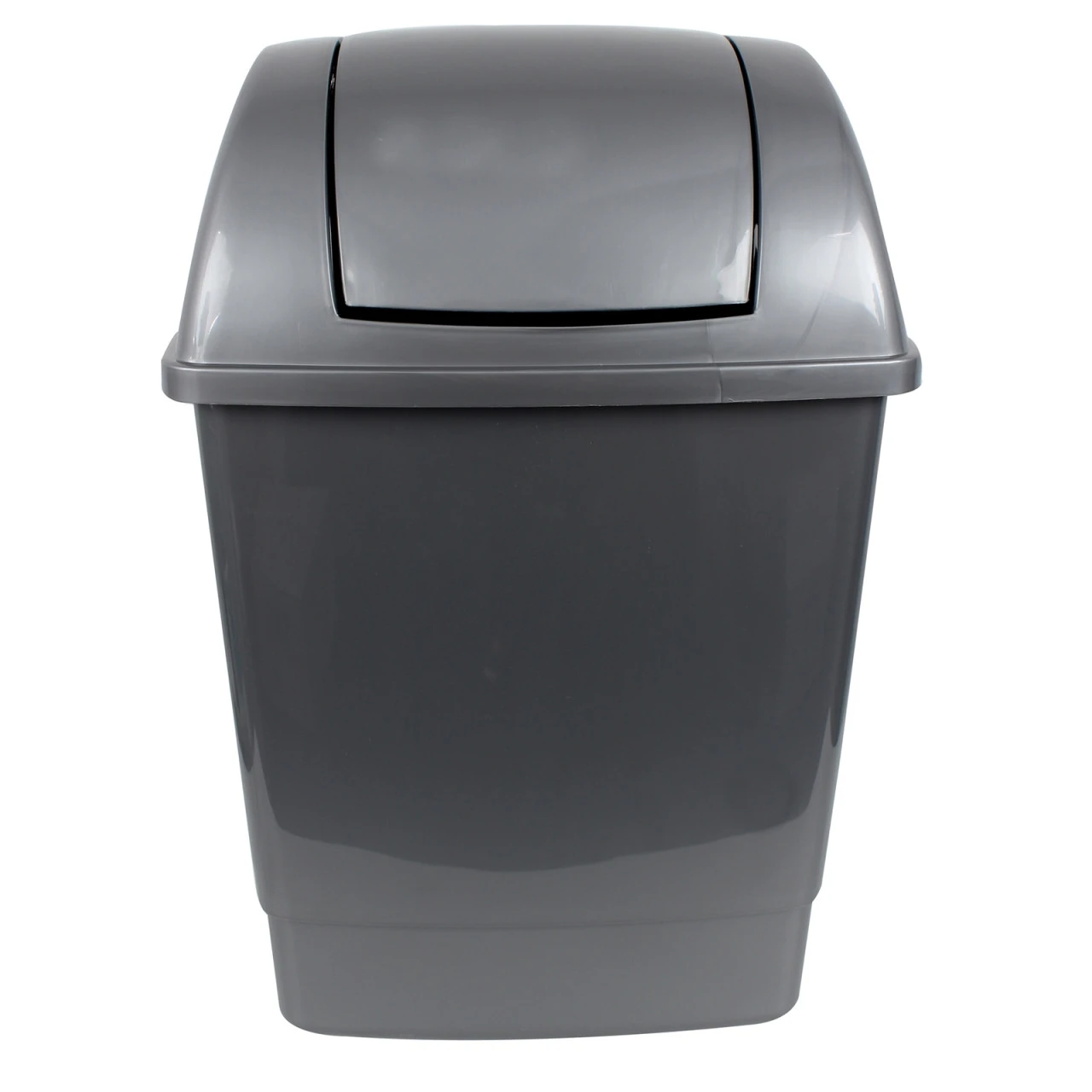 Abfalleimer mit Schwingdecke. Eckiger Abfalleimer mit praktischem abnehmbarem Schwingdeckel. Mit 12 Litern Fassungsvermögen fügt er sich platzsparend z.B. auch in kleine Küchen ein. Die klassischen Farben silber und anthrazit passen in jeden Wohnstil.