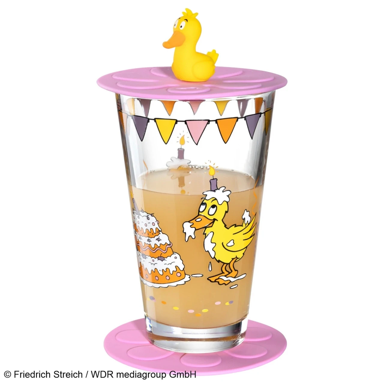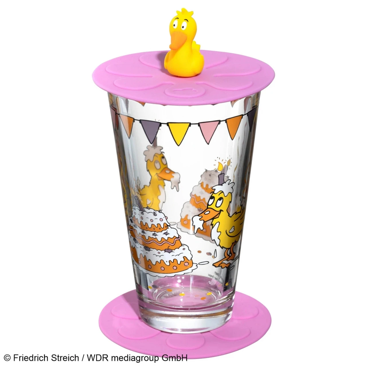 Hier kommt die Maus! Neben den kleinen Mausfans gibt es auch viele große Mausfreunde – und große Fans brauchen natürlich große Gläser! Somit ist die Maus jetzt auch auf unseren hohen Bechern unterwegs. Damit das Glas auch immer sicher steht, haben wir farblich passende Untersetzer designt. Gegen ungebetene Gäste gibt es einen bunten Deckel mit der Ente. Fröhlich, bunt und verspielt kommt das Partydekor daher. Und irgendwo hat sich auch die Leonardowolke versteckt. Einfach praktisch: Das BAMBINI Trinkglas ist spülmaschinengeeignet! Da sollten Sie nicht mehr lange warten! Kommen auch Sie in den Genuss dieses wunderschönen Trinksets! Auch als Geschenk eine ausgezeichnete Wahl! Maße Ø 8 cm, Höhe 13,2 cm, Nutzinhalt 200 ml (Randvollvolumen 300 ml)