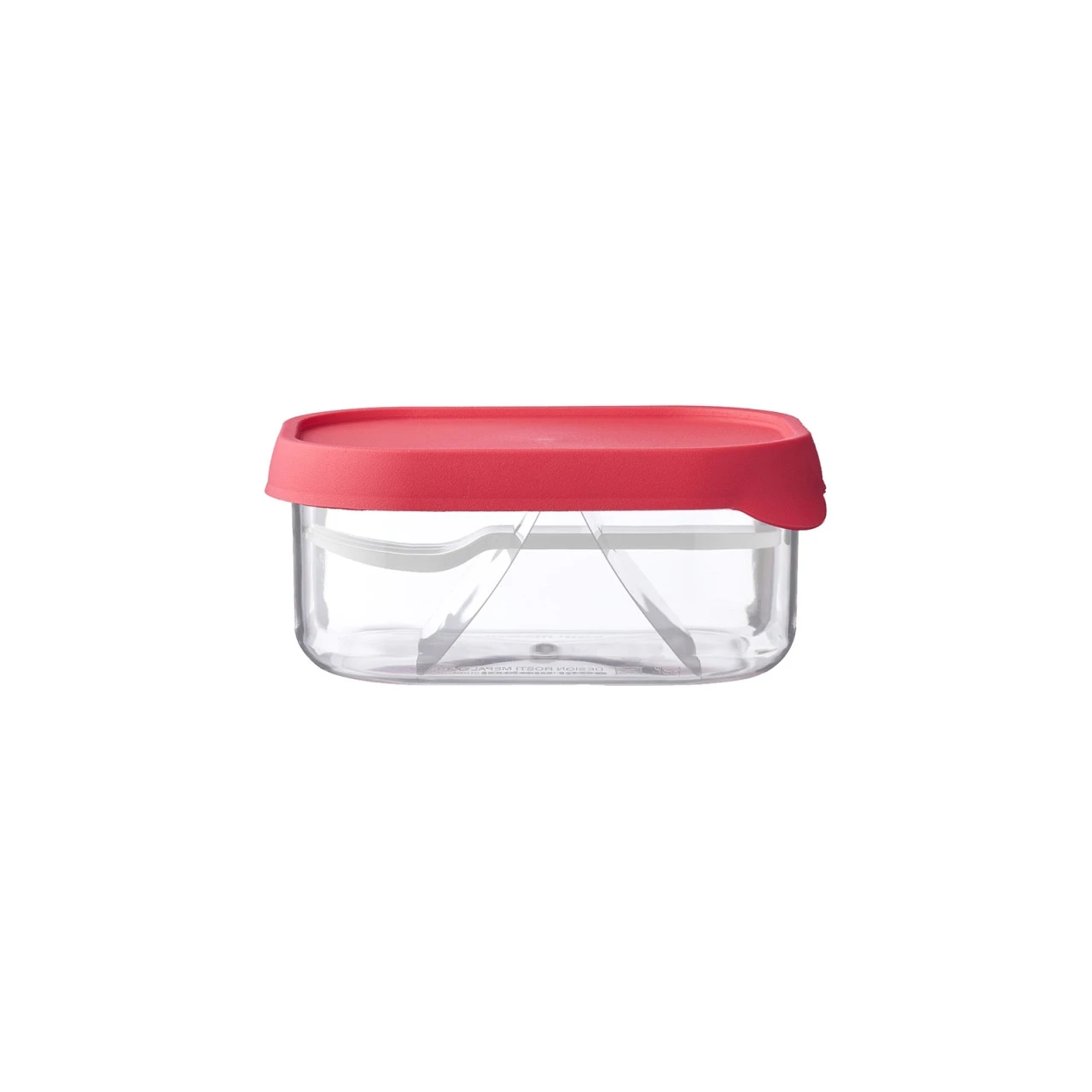 Die bruchfeste Fruchtbox passt perfekt in die Brotdose und kann in der Spülmaschine gereinigt werden (ohne Deckel). Inklusive Fruchtgabel. Maße 11,3 x 8 x 5 cm, Nutzinhalt 250 ml