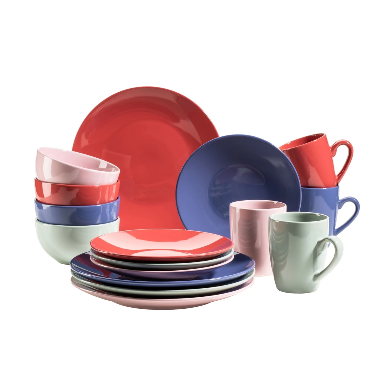 Das 16-teilige Kombiservice aus hochwertigem Steinzeug besticht durch sein farbenfrohes, dennoch harmonisch abgestimmtes Design. Jedes Teil wird in den Trendfarben Rosa, Indigo, Karminrot und Salbei geliefert. Die Serie ist mikrowellengeeignet sowie spülmaschinenfest und daher nicht nur für festliche Anlässe, sondern auch für den täglichen Gebrauch geeignet.