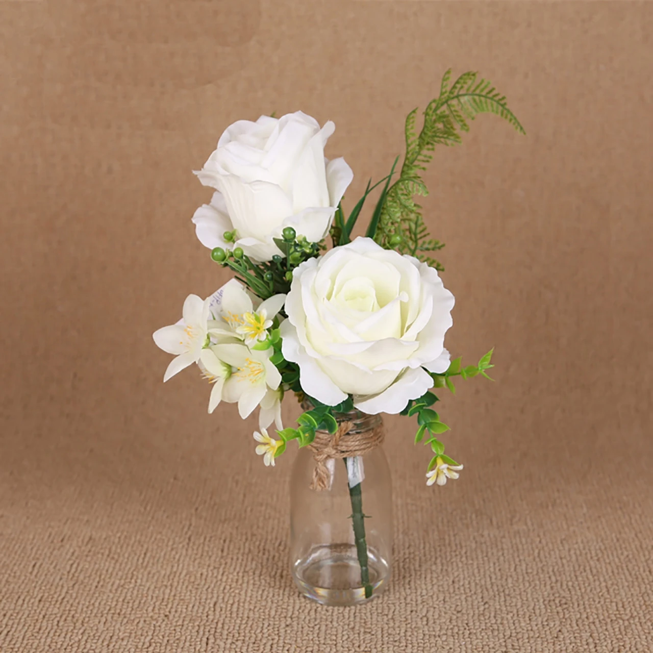 Naturgetreu nachgebildetes Rosen-Arrangement aus Kunststoff und Glas für verschiedene Dekorationen und zum Basteln. Ein wunderschöner Blickfang für Ihr Zuhause. Maße ca.: Höhe 28 cm Breite 6 cm