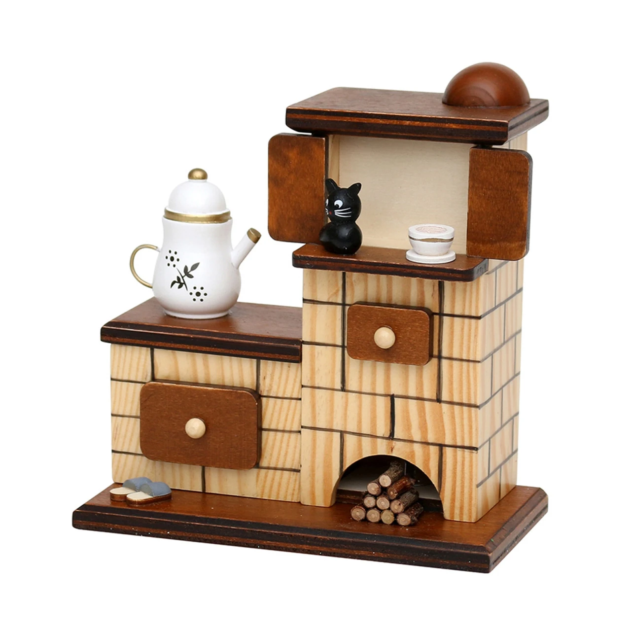 Der traditionelle Räucherofen sorgt für eine gemütliche Weihnachtsstimmung. Die Figur ist aus Holz und mit vielen kleinen Details wie Kaffeekanne, Pantoffeln und Katze geschnitzt und bemalt. Die Öfen sind 2-fach sortiert – die Auswahl ist nicht frei wählbar. Nutzen Sie diese schöne Weihnachtsfigur als Dekoration im Advent oder lassen Sie die Figur mal so richtig paffen! Maße: L/B/H 14 x 7,5 x 15 cm