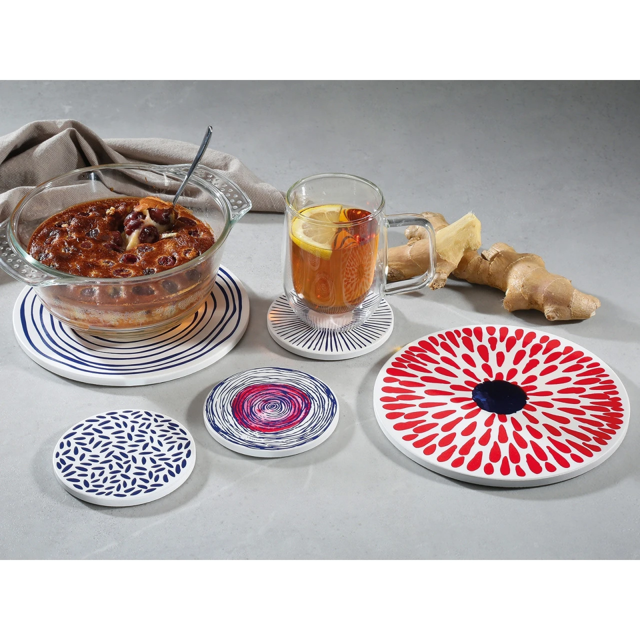 | Besonderheiten: | Topfuntersetzer rund mit Muster |
